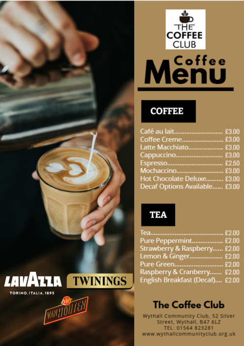 Take a moment to unwind at Wythall’s very own Coffee Club.